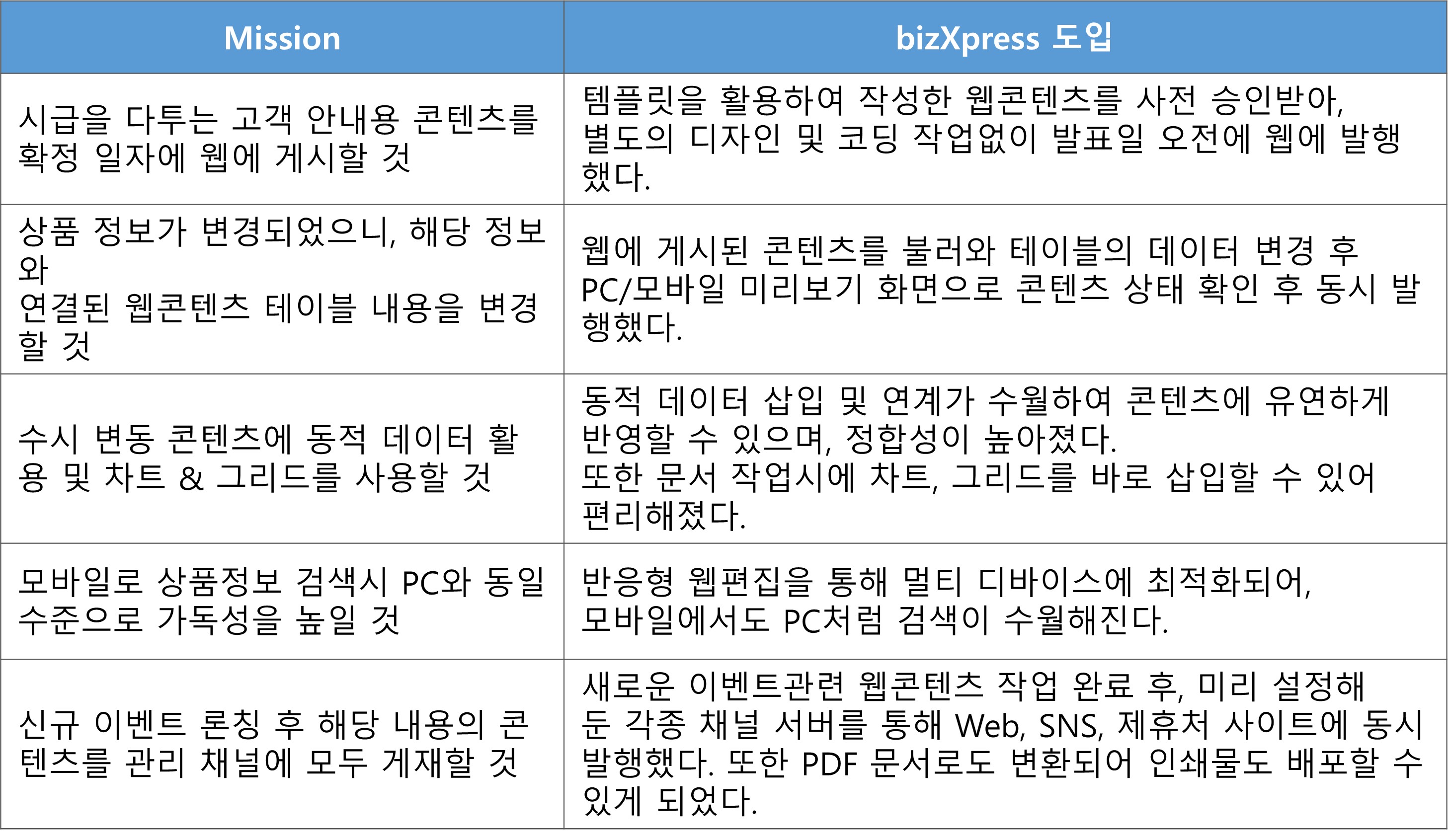 보다 자세한 bizXpress(CMS)의 기능 및 다른 제품과 비교정보가 궁금하시면, 제품문서를 다운로드 하세요~