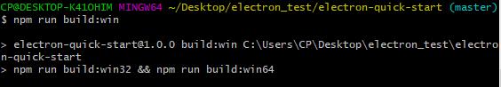 설정을 끝마친 뒤 npm에서 script에서 설정해준 build:win을 실행합니다.