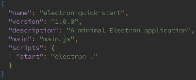 먼저 package.json파일을 보겠습니다. npm은 기본적인 package.json 파일을 생성하여 정보를 제공하는데 main필드에 명시된 스크립트는 애플리케이션을 시작하는 스크립트이며, 메인 프로세스에서 실행됩니다. start 스크립트를 electron 런타임으로 변경함으로써 npm을 시작할 때 일렉트론으로 실행되게 됩니다.