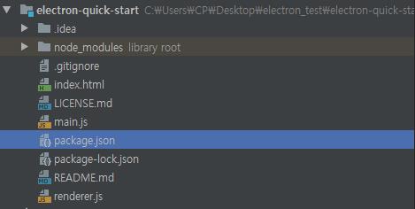 Node.js 모듈과 마찬가지로 시작점은 package.json 입니다. 기본적으로 Electron 애플리케이션 대부분은 다음과 같은 폴더 구조를 가지고 있습니다: 여기서 주요하게 봐야 될 파일들은 package.json, main.js, index.html 파일들 입니다.