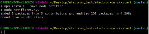 먼저 node-notifier사용을 위해선 npm을 통한 node-notifier모듈 설치가 필요합니다.