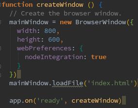 width와 height 값으로 새로운 윈도우를 생성했을 때의 사이즈 값을 설정 할 수 있고 loadFile() 으로 새로운 윈도우를 생성했을 때 보여질 html파일을 설정할 수 있습니다.