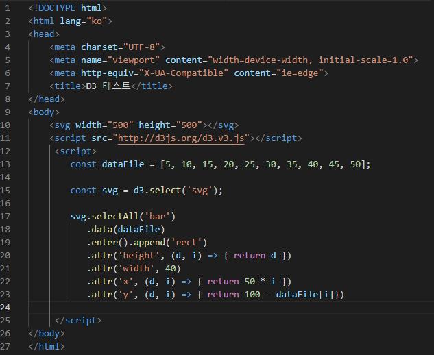 두 번째는, 아래와 같이 CDN방식으로 D3를 사용하는 방법이 있습니다.