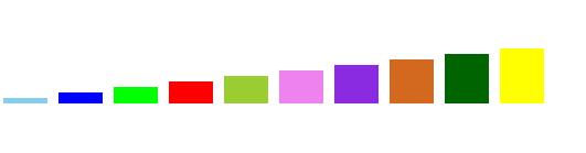 다시 코드로 돌아가서 22번째 라인에서 rect 차트에 color 배열 안에 있는 색상을 적용합니다. 디자인은 CSS 파일을 따로 작성하여 연결하는 게 가장 좋은 방법이지만 D3에서는 다음과 같이 인라인 스타일로 직접 넣어주는 방식으로도 사용이 가능하다는 걸 보여드리기 위해 다음과 같은 방법을 사용하였습니다.