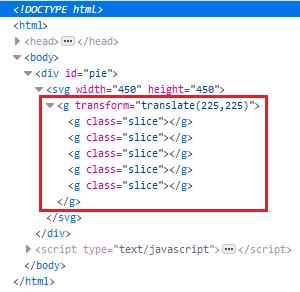 append함수를 이용해 <g class=”slice”></g>요소들을 만들어 냅니다. [line39~40]