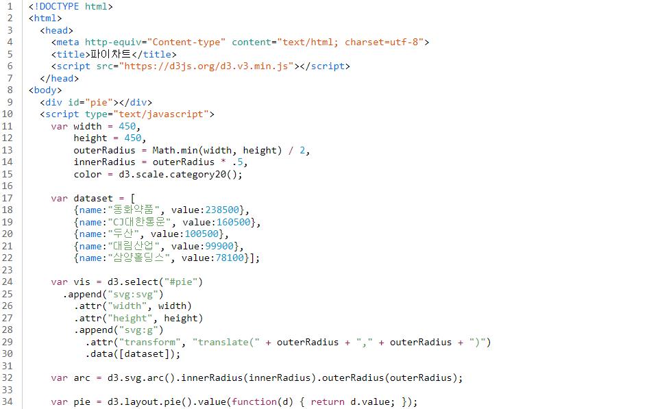 select(“#pie”)로 id값이 pie인 요소를 선택하고 [line24]
