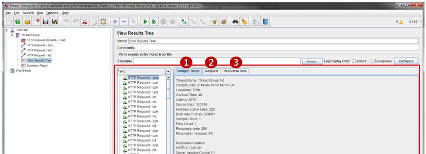 라. Listener 추가 및 설정 : Sampler의 요청에 대한 결과를 수집해서 그 결과 값을 보여주는 Element입니다. 요청을 보낸 후 성공/실패, 응답시간, 응답 메시지 등을 확인하기 위해 반드시 추가되어야 합니다.