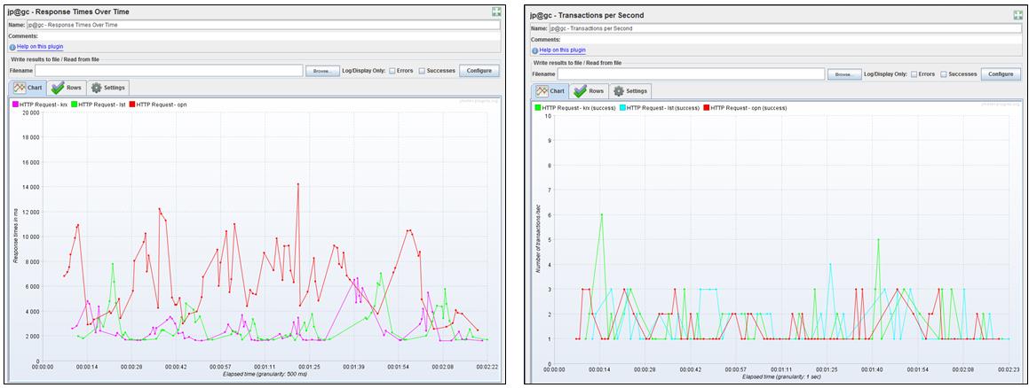 시간에 따른 각 도메인별 응답 시간과 트랜잭션 처리량을 차트로 제공합니다.