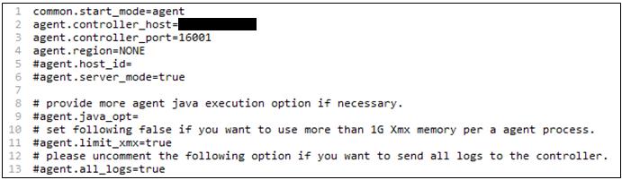 나. 설치된 tar 파일을 압축 해제하고, 해제된 폴더로 이동하여 __agent.conf 파일을 확인합니다. Controller에서 직접 받은 agent 파일의 경우는 ip와 port가 등록되어 있어 수정할 필요가 없습니다. 만약 Controller에서 설정을 바꾸셨다면 agent 설정파일도 수정하여야 합니다.