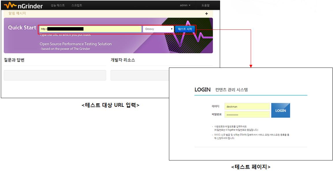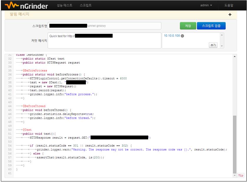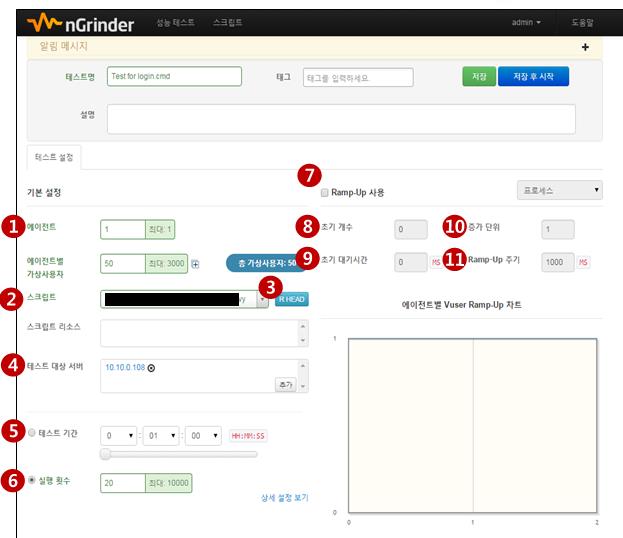| 스크립트 | 사용자가 해당 주소로 부하를 걸 스크립트를 보여줍니다. |