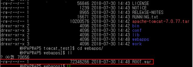 가. 다운로드 받은 WAR 파일을 Tomcat의 webapps 폴더(${TOMCAT_HOME}/webapps)에 저장합니다.