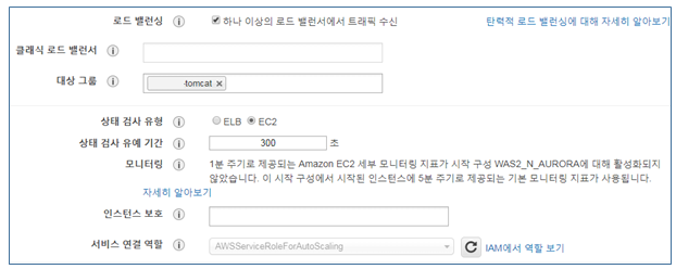 ④ 자동으로 만들어지는 인스턴스가 로드 밸런스로 들어오는 트래픽을 받을 수 있도록 로드 밸런서의 대상 그룹 지정