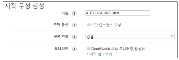 4) AUTO SCALING 시작 구성 생성