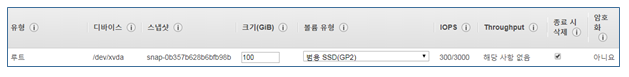 ⑥ 스토리지 용량 및 볼륨 유형 지정