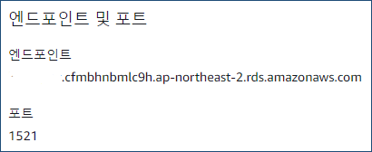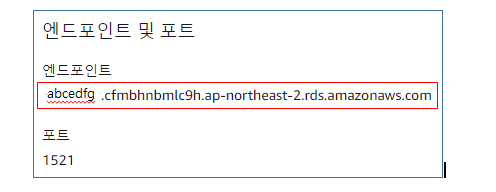② 연결 & 보안 탭에서 엔드포인트 및 포트 확인