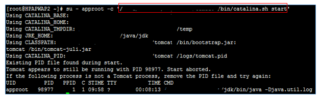 su - approot -c $CATALINA_HOME/bin/startup.sh