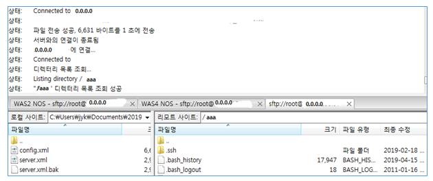 ④ 로컬에 있는 소스 더블클릭 또는 드래그하여 리모트로 파일 올리기