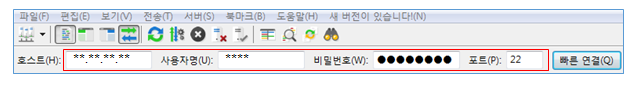 ② 호스트, 사용자명, 비밀번호, 포트 입력 후 빠른 연결