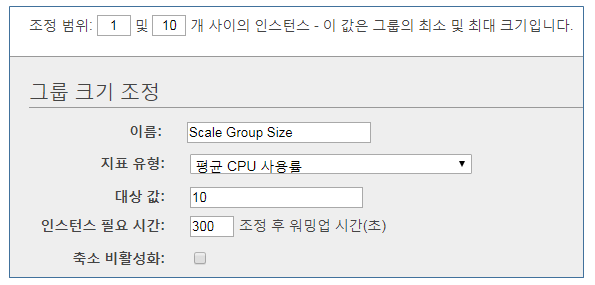 ⑤ 인스턴스가 몇개까지 늘어날지, 어떤 지표 상태에서 인스턴스가 추가가 될것인지 지정