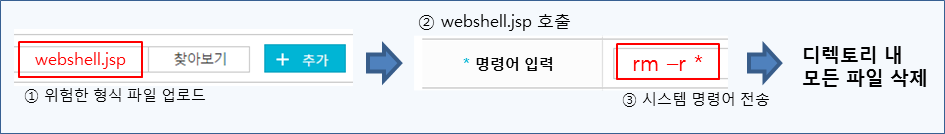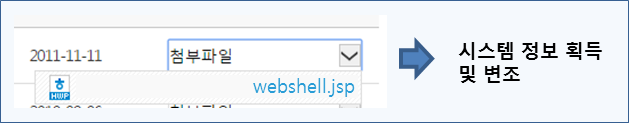 ▶ 서버측에서 실행될 수 있는 스크립트 파일(asp, jsp, php파일 등)을 업로드를 하여, 웹을 통해 직접 실행하거나, 외부입력값에 대해 경로 조작에 사용될 수 있는 문자를 이용하여 접근제한 영역에 접근을 하거나, 원격으로부터 소스코드 또는 실행파일을 실행할 하여 서버의 변조, DNS 스푸핑 (Spoofing) 등 공격자가 악의적인 코드를 실행또는 정보를 탈취하는 취약점