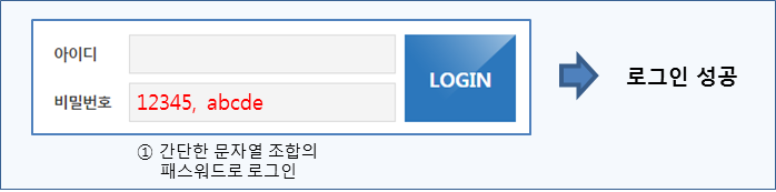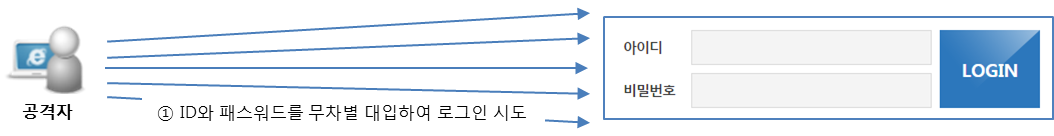 ▶ 로그인 시도에 대한 횟수를 체크하지 않으면 로그인 시도 횟수가 초과되었을 때 계정에 대한 보호조치가 설정되어 있지 않은 경우 패스워드 무작위 대입공격이 시도될 수 있다.