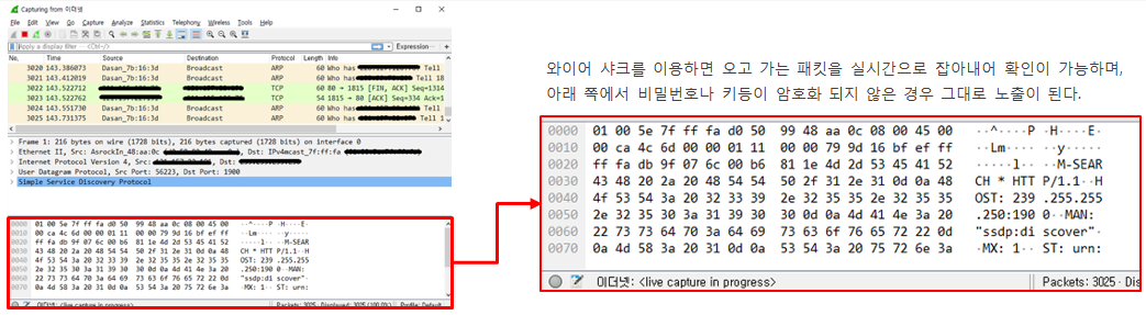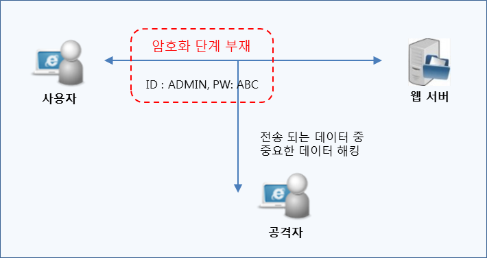 1) 개요 : 사용자 또는 시스템의 중요정보가 포함된 데이터를 평문으로 송.수신할 경우, 통신채널 스나핑을 통해 인가되지 않은 사용자에게 민감한 데이터가 노출될 수 있는 보안 취약점