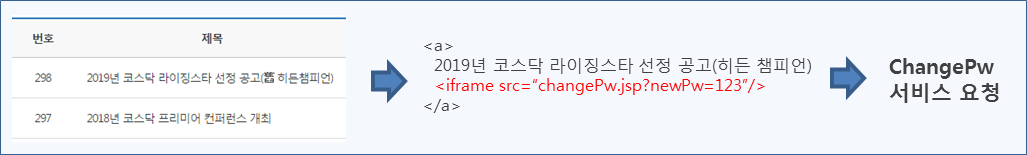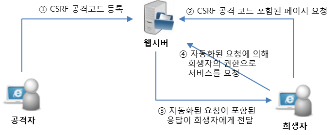 ① 요청 위조 코드 등록하여 공격 (크로스사이트 요청 위조 CSRF)