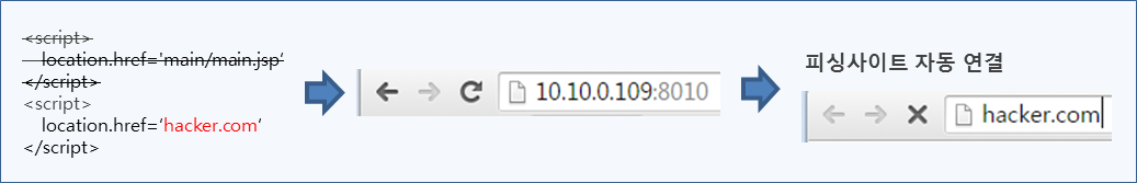 ② 신뢰되지 않은 URL 주소로 자동접속 연결