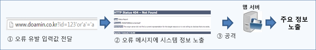 1) 개요 : 데이터의 유효성을 검증하지 않아 공격자가 URL입력란에 SQL을 삽입하여 DB로 부터 정보를 열람하거나 조작할 수 있는 보안 취약점