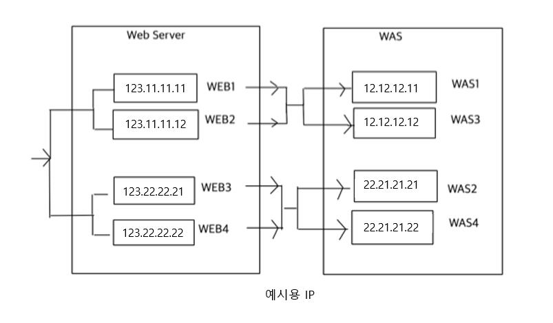 이중화 된 Web Server 와 WAS 는 위와 같이 구성되어 있으며 각각의 웹과 WAS 들이 이중화 되어 있습니다.
