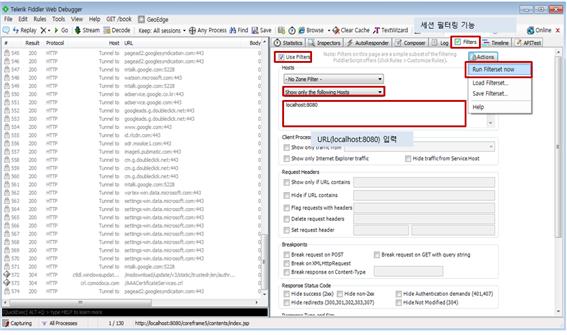 * 필터링 – 필터링을 통해 원하는 패킷만을 추출하여 확인할 수 있다.