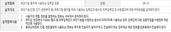 Coreframe에는 OWASP ESAPI 탑재되어 있어 인젝션, XSS 등의 취약점들은 모두 필터링되게 설계되어있어 나머지의 보안항목에 대해서만 설계하면 된다.