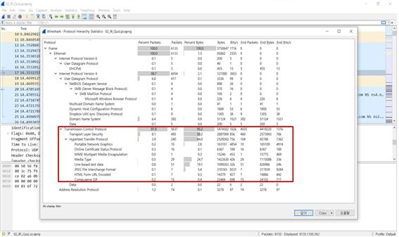 * Protocol Hierachy – 프로토콜에 관련된 통계 자료를 확인할 수 있다.