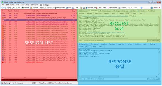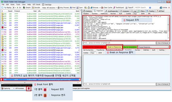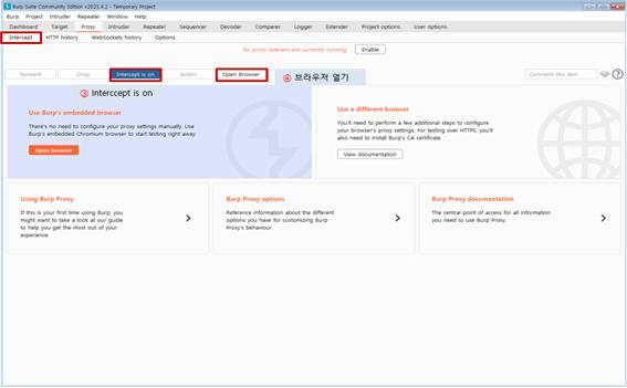 웹 동작 시 클라이언트와 서버 사이에 프록시 서버를 구축하여 패킷을 프록시 서버를 거치게 하여 중간에서 패킷을 확인하거나 변조하여 서버에 패킷을 전달해주는 프록시 도구