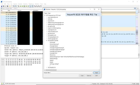 * Requests – Request에 응답한 페이지의 목록을 확인할 수 있다.