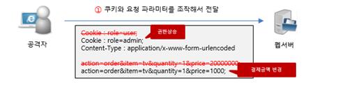 쿠키 또는 Hidden 필드등의 외부입력 값이 보안기능을 수행하는 중요 파라미터로 사용되는 경우 프록시 서버에서 파라미터를 조작하여 부적절한 인가가 발생할 수 있다.