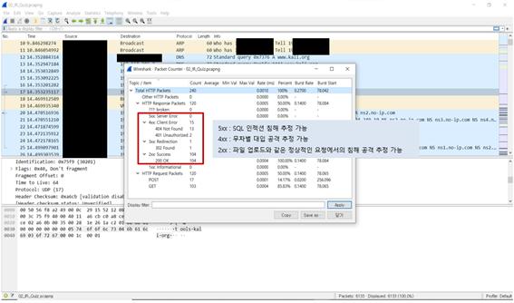 * Packet Counter – HTTP 상태 코드에 대한 통계 정보를 확인할 수 있다.