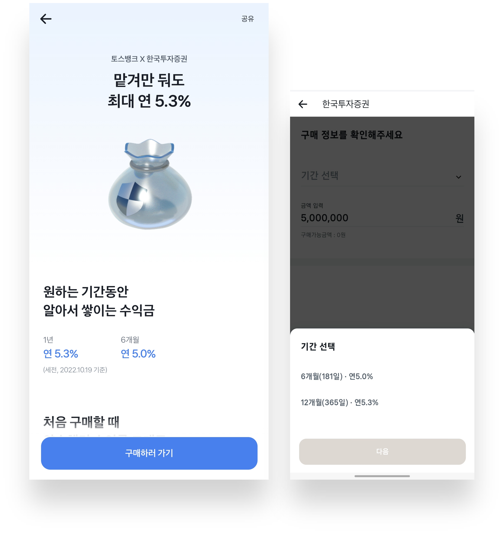 - 구매 금액과 기간만 선택하면 발행어음에 바로 가입할 수 있는 편의성 높은 프로세스 제공