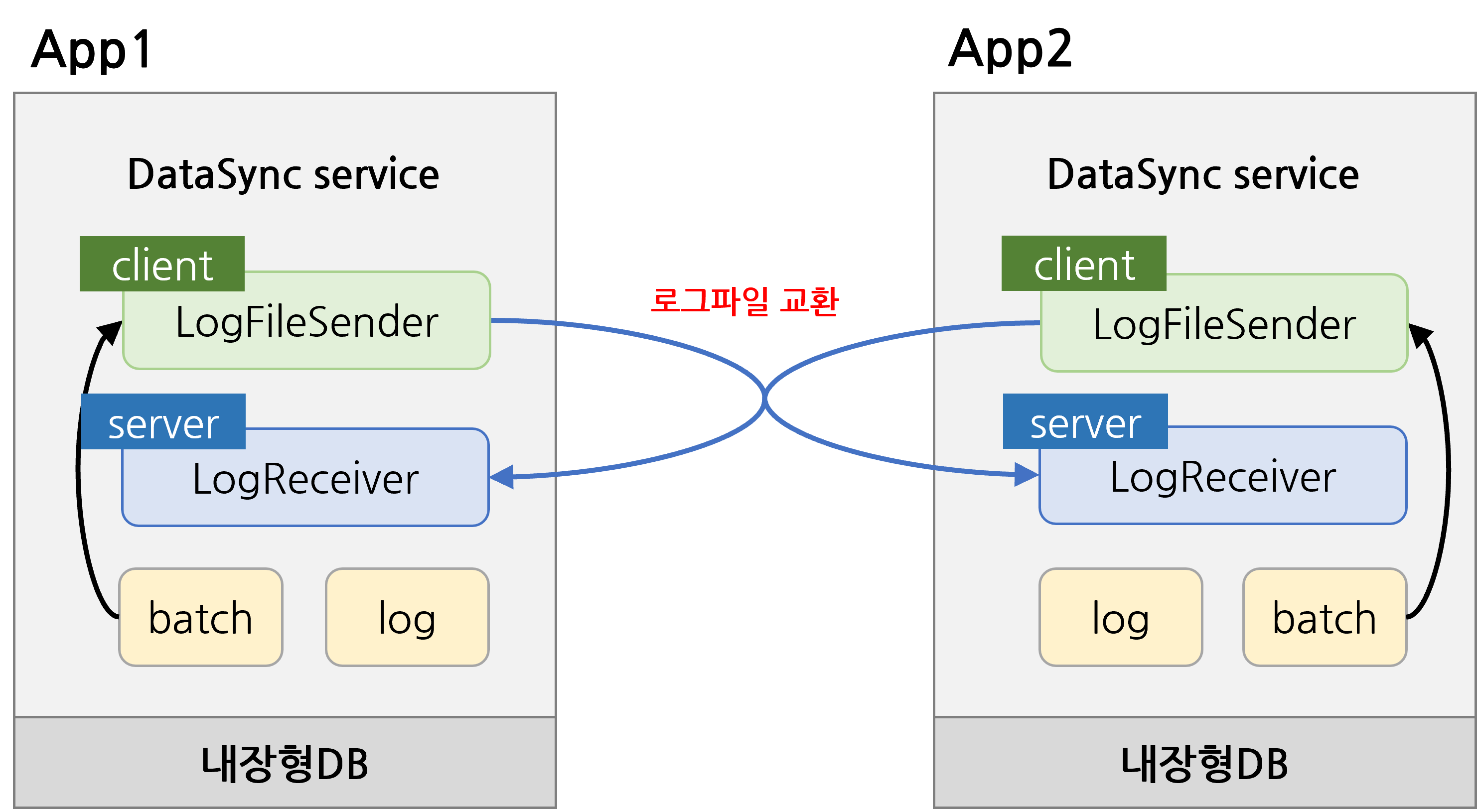 데이터가 변경되면 로그파일에 적재하며 일정 시간마다 파일을 전송하여 데이터를 동기화 함