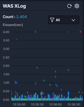 250ms 간격으로 컨테이너와 was 단위별로 수행되는 서비스 개수를 확인