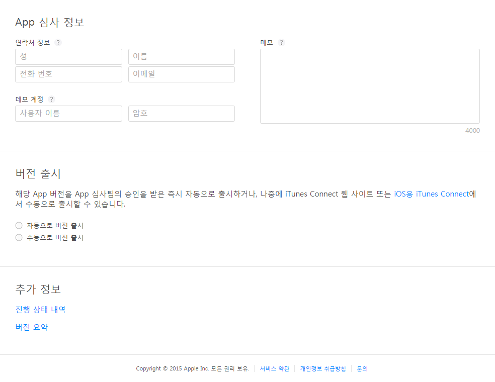 메모 - 추가적으로 앱 심사에 덧붙일 정보가 있다면 입력합니다.