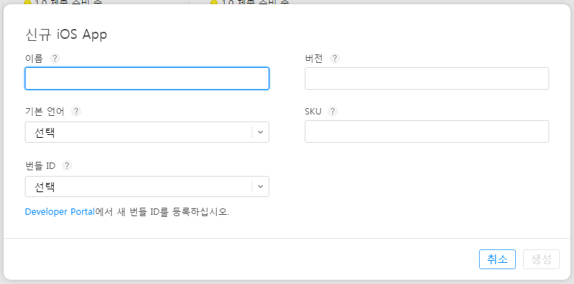 이름 - 앱스토어에 나타나는 앱이름입니다. 이후에 수정 가능합니다.